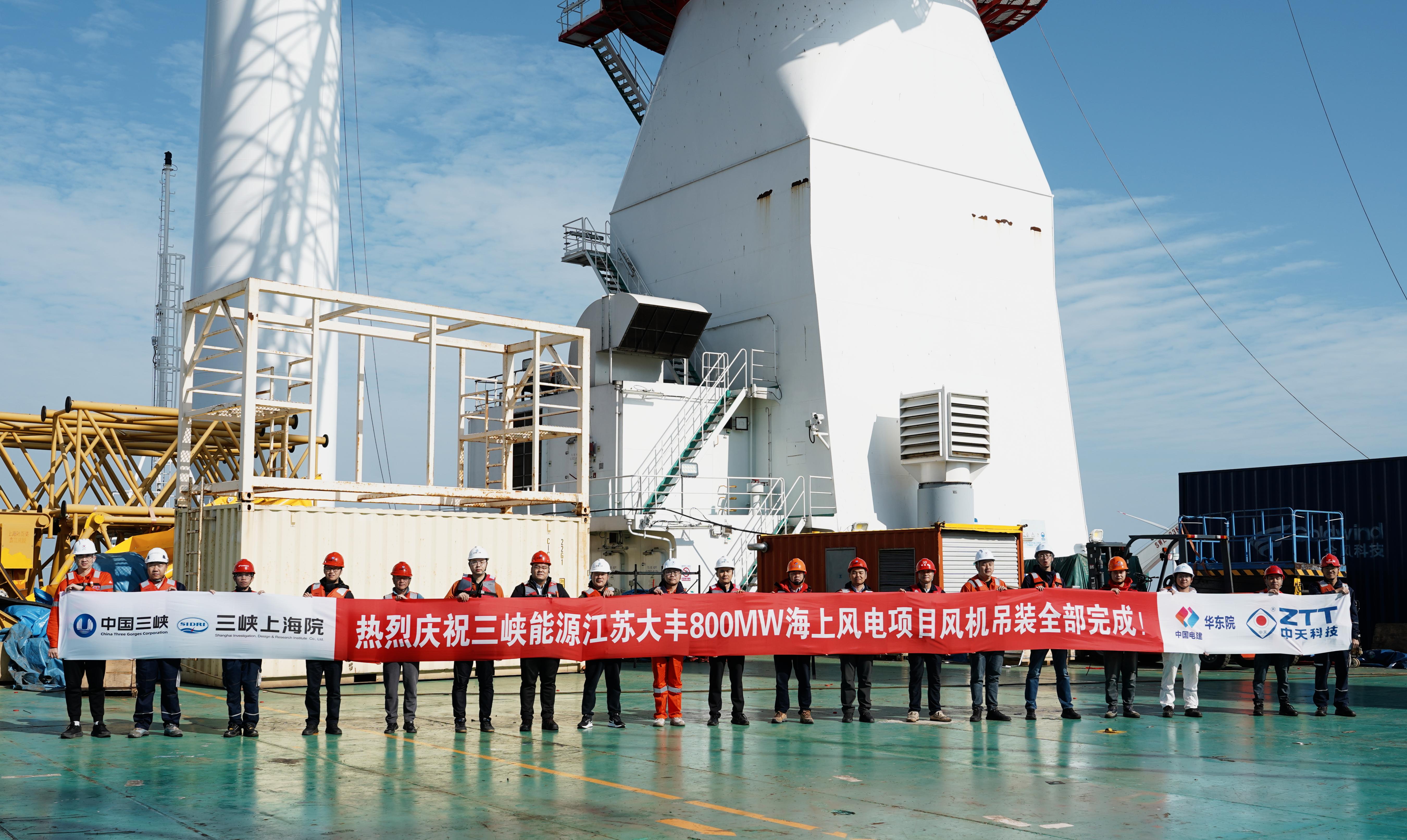 “速度”的背后,是对“品质”的执着坚守。在吊装江苏海域单机容量最大的13.6兆瓦风机(轮毂中心高142米)这一标志性任务中,项目团队展现了毫米级的高精度吊装控制能力和全方位的安全保障体系,圆满完成高难度作业。这不仅是效率的胜利,更是中天科技深厚工程技术底蕴和成熟质量管控体系的集中体现。