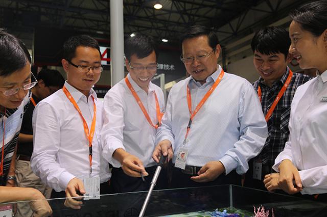 中央纪委驻工业和信息化部纪检组组长、工业和信息化部党组成员金书波参观中天科技展台,中天科技集团董事长薛济萍陪同参观。